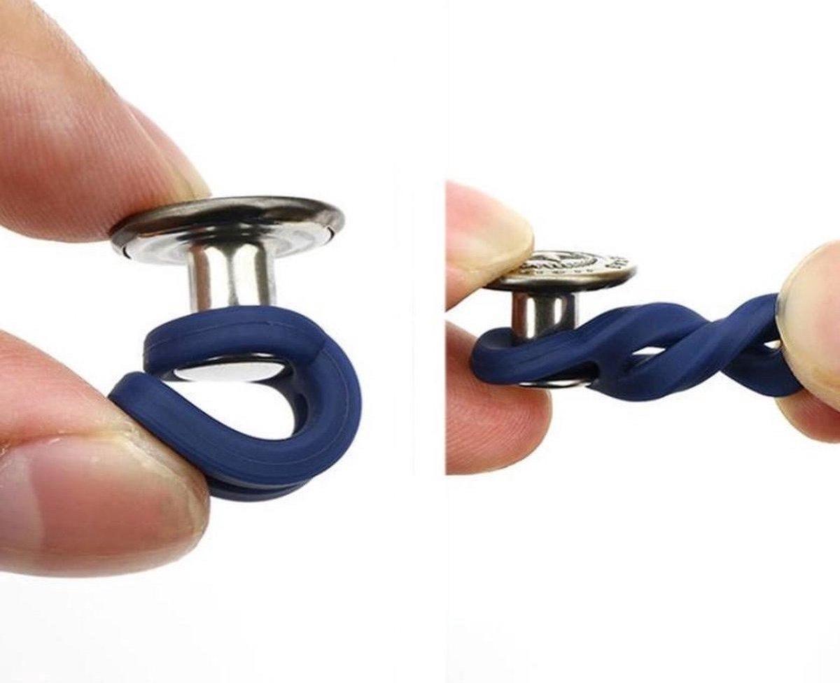 - Bekijk hieronder de video waarin we laten zien hoe je de broeksknoop-elastiek makkelijk vasthaakt aan je bestaande knoop met het elastiekje.