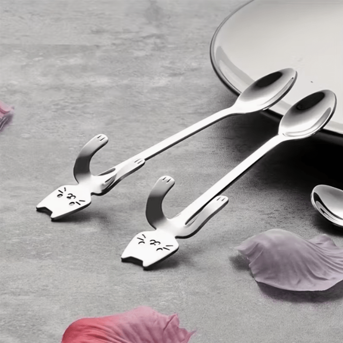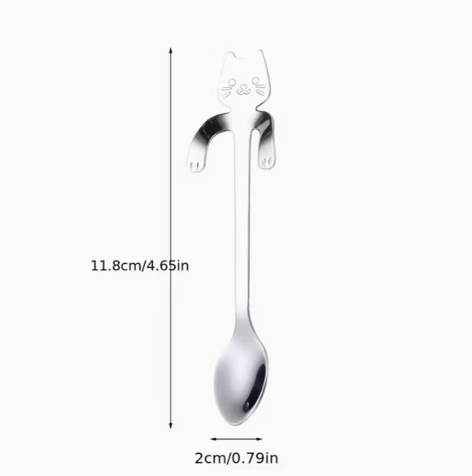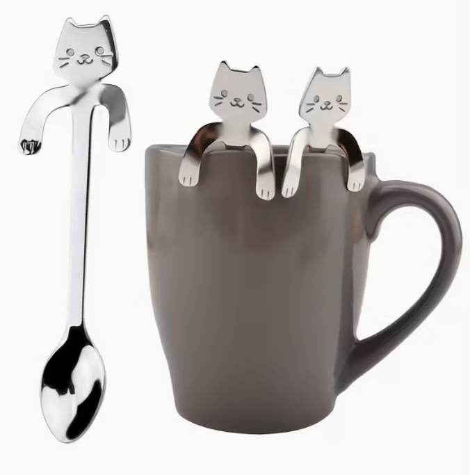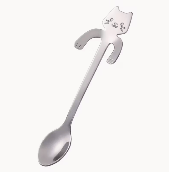 Kat koffie- en theelepel, roestvrij staal, set van 2 stuks